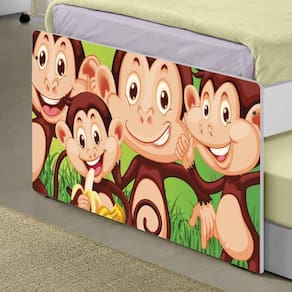 A Bicama Juvenil Barcelona Adesivada Safari Macaquinhos é belíssima e conta com um design funcional, que ocupa pouco espaço no ambiente. A Coleção Safari Macaquinhos foi desenvolvida por nossos designers oferecendo um visual exclusivo, descontraído e divertido ao ambiente. A cama auxiliar fica embaixo da principal e basta puxá-la por meio das corrediças para começar a fazer dela. É ideal para quartos pequenos e para caso precise de uma cama extra para receber um amigo, ou divida o dormitório com alguém. Feita em MDF e MDP e seu acabamento é feito com pintura UV brilhante tornando-a um produto resistente e com aspecto de novo por muito mais tempo. É uma excelente escolha para acomodar colchões de solteiro na medida de 188 cm x 88 cm de largura.
