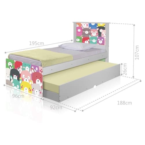 A Bicama Bibox Juvenil Barcelona Adesivada Ursinhos Coloridos é belíssima e conta com um design funcional, que ocupa pouco espaço no ambiente.