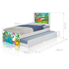 MATERIAL PRINCIPAL: MDF/MDP | LARGURA PRODUTO COM EMBALAGEM (CM): 52 | COMPRIMENTO PRODUTO COM EMBALAGEM (CM): 195 | PESO PRODUTO COM EMBALAGEM (KG): 37,5 | MODELO: Bicama Juvenil Adesivada Dinossauros no Lago | INSTRUÇÕES/CUIDADOS: Limpar com pano macio e seco, não utilizar produtos abrasivos. | CONTEÚDO DA EMBALAGEM: 1 Bicama | LARGURA DO PRODUTO (CM): 96 | PRODUTO PRECISA DE MONTAGEM?: Sim, a montagem é simples mas sugerimos a contratação do nosso de montagem (para os CEPs em que o está disponível) ou de algum experiente de sua preferência | ESTADO DE ORIGEM: SP | ALTURA DO PRODUTO COM EMBALAGEM (CM): 25 | DESCRIÇÃO DO TAMANHO: Altura: 107 cm Largura: 96 cm Comprimento: 195 cm | CORES DO PRODUTO (FILTRO DE CORES): Branco | ALTURA DO PRODUTO (CM): 107 | MATERIAL PARA FILTRO: MDF/MDP | COMPRIMENTO DO PRODUTO (CM): 195 | COR PREDOMINANTE: Branco | PESO DO PRODUTO (KG): 36,7