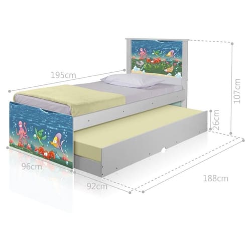 ALTURA DO PRODUTO (CM): 107 | ESTADO DE ORIGEM: SP | INSTRUÇÕES/CUIDADOS: Limpar com pano macio e seco, não utilizar produtos abrasivos. | CORES DO PRODUTO (FILTRO DE CORES): Branco | COR PREDOMINANTE: Branco | MODELO: Bicama Juvenil Adesivada Fundo do Mar | COMPRIMENTO PRODUTO COM EMBALAGEM (CM): 195 | LARGURA DO PRODUTO (CM): 96 | PRODUTO PRECISA DE MONTAGEM?: Sim, a montagem é simples mas sugerimos a contratação do nosso de montagem (para os CEPs em que o está disponível) ou de algum experiente de sua preferência | LARGURA PRODUTO COM EMBALAGEM (CM): 52 | MATERIAL PARA FILTRO: MDF/MDP | ALTURA DO PRODUTO COM EMBALAGEM (CM): 25 | MATERIAL PRINCIPAL: MDF/MDP | CONTEÚDO DA EMBALAGEM: 1 Bicama | DESCRIÇÃO DO TAMANHO: Altura: 107 cm Largura: 96 cm Comprimento: 195 cm | PESO DO PRODUTO (KG): 36,7 | COMPRIMENTO DO PRODUTO (CM): 195 | PESO PRODUTO COM EMBALAGEM (KG): 37,5