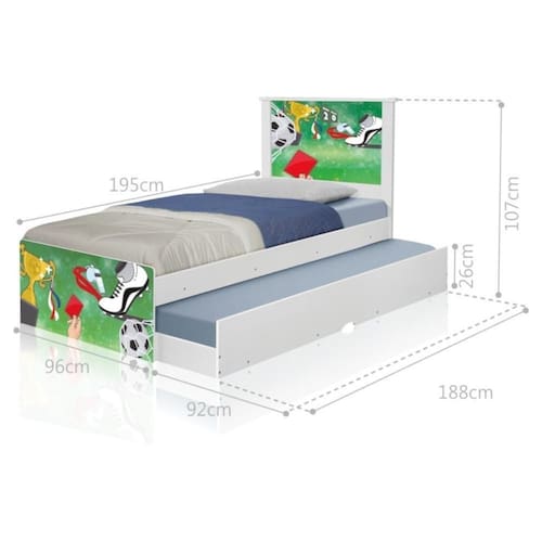 COMPRIMENTO DO PRODUTO (CM): 195 | PESO DO PRODUTO (KG): 36,7 | COR PREDOMINANTE: Branco | CONTEÚDO DA EMBALAGEM: 1 Bicama | LARGURA DO PRODUTO (CM): 96 | ESTADO DE ORIGEM: SP | ALTURA DO PRODUTO (CM): 107 | MATERIAL PARA FILTRO: MDF/MDP | LARGURA PRODUTO COM EMBALAGEM (CM): 52 | COMPRIMENTO PRODUTO COM EMBALAGEM (CM): 195 | PESO PRODUTO COM EMBALAGEM (KG): 37,5 | MODELO: Bicama Juvenil Adesivada Futebol Placar | INSTRUÇÕES/CUIDADOS: Limpar com pano macio e seco, não utilizar produtos abrasivos. | MATERIAL PRINCIPAL: MDF/MDP | PRODUTO PRECISA DE MONTAGEM?: Sim, a montagem é simples mas sugerimos a contratação do nosso de montagem (para os CEPs em que o está disponível) ou de algum experiente de sua preferência | ALTURA DO PRODUTO COM EMBALAGEM (CM): 25 | CORES DO PRODUTO (FILTRO DE CORES): Branco | DESCRIÇÃO DO TAMANHO: Altura: 107 cm Largura: 96 cm Comprimento: 195 cm