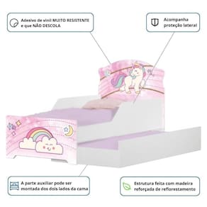 Bordas arredondadas evitando riscos de acidentes, adesivos em Vinil de alta qualidade e cama auxiliar.