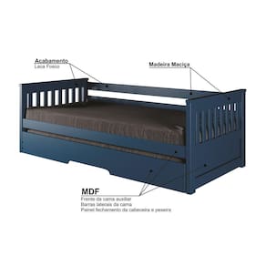 Um excelente custo-benefício com a vantagem de ser uma peça compacta e decorativa. Acompanha Cama Auxiliar: Sim Acompanha Colchão: Não Altura do Estrado até o Chão: 28 cm Altura dos Pés: 3 cm Ambiente Principal: Quarto Cama Auxiliar Acompanha Colchão: Não Cama Auxiliar com Rodízio: Sim Cama Auxiliar Suporta Até (kg): 90 kg codigo_ean: 7909903408773 Complexidade da Montagem: Baixa: pode ser montado por uma pessoa sozinha Cor: Azul Cor do Produto: Azul Escala de Brilho: Fosco Informações Complementares: Os objetos que ambientam as fotos não acompanham o produto. Imagens meramente ilustrativas. Cores e tonalidades podem variar. Itens Inclusos: 1 Bicama, Kit Ferragem e Manual de Montagem Linha ou Coleção: Mission Manual de Montagem e Instalação: https://product-hub-prd.madeiramadeira.com.br/867888/documents/cef1fc5e-3410-4426-a8a3-5eb3296dc3dc1505261bicamamission2023v3.pdf Material do Estrado: Madeira Maciça Material dos Pés: Metal Material Principal: Madeira Maciça Necessita Montagem: Sim Origem do Produto: Nacional Permite a Utilização de Cama Auxiliar: Sim Peso: 44 kg Possui Baú: Não Possui Gavetas: Não Possui Pés: 02 Possui Portas: Não Possui Prateleiras: Não Possui Rodízio: Sim Recomendações de Uso, Manutenção e Limpeza: Não armazenar ou utilizar o produto em locais com excesso de umidade. Para limpeza, não utilizar produtos químicos e abrasivos, usar apenas com pano umedecido, para garantir a maior durabilidade do móvel. Seguir rigorosamente as instruções de uso contidas no Manual de Montagem. Rodízio com Trava: Não Sapatas Niveladoras: Não Sistema de Montagem: Parafusos, Cavilhas Suporta Até (kg): 90 kg Tamanho da Cama: Solteiro Tamanho do Colchão Indicado (L x C): 88cm x 188cm Tamanho do Colchão Indicado Cama Auxiliar: 88cm x 187cm Tipo de Cama: Bicama Tipo de Colchão: Solteiro Tipo de Estrado: Fixo Tipo de Madeira Maciça: Pinus Marca: Arbol Móveis Ean: 7909903408773