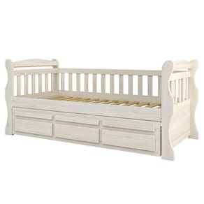 Bicama MK Solteiro Branco Lavado 3 Gavetas Madeira Pinus - Saraiva