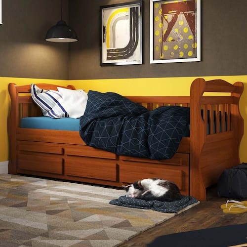 Bicama MK Solteiro Castanho Claro 3 Gavetas Madeira Pinus - Saraiva