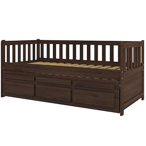 Bicama Reta Solteiro Castanho Escuro 3 Gavetas Madeira Pinus - Saraiva