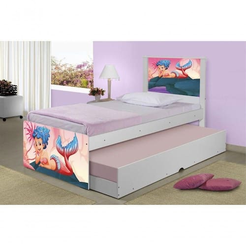 A Bicama Juvenil Barcelona Adesivada Sereia nas Pedras é belíssima e conta com um design funcional, que ocupa pouco espaço no ambiente.