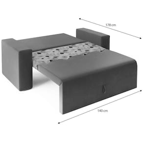 Estrutura: Madeira de reflorestamento EucaliptoRevestimento: Tecido Sued Veludo LisoLugares: 2 lugaresAssento: Fixo, em espuma selada D18, com percintas elásticasEncosto: Fixo, em espuma D16Braço: Fixo, em espuma D16Peso: Suportado Suporta ate 100 Kilos por pessoaPés: Sim, em PVC maior durabilidade e resistênciaExtra Sofá-Cama: Fechado um sofá de 02 lugares e aberto 01 cama de casalDimensões do produto montado