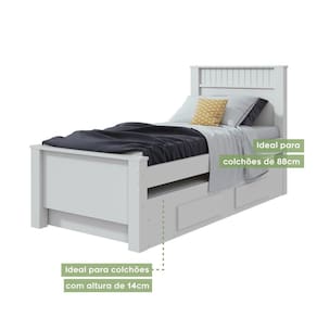 Se você está em busca de uma noite revigorante de sono, vai se apaixonar pela Cama Athenas. Confeccionada com materiais de qualidade e resistência, ela terá uma vida útil muito mais longa e ainda ajudará a decorar seu dormitório com graça e charme. Ela não é linda? Aproveite! Acabamento da Gaveta: Pintura Acabamento da Porta: Acabamento da Prateleira: Acabamento dos Pés: Pintura Acompanha Cama Auxiliar: Sim Acompanha Colchão: Não Acompanha Dossel: Acompanha Móbile: Acompanha Suporte para Mosquiteiro: Altura do Estrado até o Chão: 40 Altura dos Pés: 16 Ambiente Principal: Quarto Cama Auxiliar Acompanha Colchão: Não Cama Auxiliar com Rodízio: Sim Cama Auxiliar Suporta Até (kg): 120 Complexidade da Montagem: Média: pode ser montado por mais de uma pessoa e/ou necessite de maior conhecimento para montagem Cor: Branco Cor do Produto: Branco Cor Flex: Escala de Brilho: Fosco Escala de Brilho da Gaveta: Fosco Escala de Brilho da Porta: Escala de Brilho da Prateleira: Extensível: Não Gaveta com Chave: Não Informações Complementares: Itens Inclusos: 1 Cama, Kit Ferragens e Manual de Montagem Largura Máxima: Largura Mínima: Linha ou Coleção: Manual de Especificação Técnica: Manual de Montagem e Instalação: https://cdn2.madeiramadeira.com.br/atributo/mOveis-lopas/1011550-bicama-solteiro-athenas.pdf Material da Gaveta: MDF Material da Porta: Material da Prateleira: Material do Estrado: MDF Material do Puxador da Gaveta: Material do Puxador da Porta: Material dos Pés: MDF Material Principal: MDF Montagem Flex: Necessita Montagem: Sim Origem do Produto: Nacional Permite a Utilização de Cama Auxiliar: Sim Peso: 35.19 Peso Máximo por Gaveta: 5 Peso Máximo por Prateleira: Possui Baú: Não Possui Gavetas: 02 Possui Pés: 04 Possui Portas: Não Possui Prateleiras: Não Possui Rodízio: Sim Recomendações de Uso, Manutenção e Limpeza: Limpar com flanela limpa e seca. Não usar produtos abrasivos. Rodízio com Trava: Não Sapatas Niveladoras: Não Sistema de Montagem: Parafusos Tamanho do Colchão Indicado (L x C): 188cmx88cm Tamanho do Colchão Indicado Cama Auxiliar: 188cmx88cm Tipo de Cama: Convencional Tipo de Colchão: Solteiro Tipo de Corrediça da Gaveta: Metálica Telescópica Tipo de Dobradiça/Corrediça da Porta: Tipo de Estrado: Removível Tipo de Madeira Maciça: Tipo de Madeira Maciça da Gaveta: Tipo de Madeira Maciça da Porta: Tipo de Madeira Maciça da Prateleira: Tipo de Madeira Maciça do Puxador da Gaveta: Tipo de Madeira Maciça do Puxador da Porta: Tipo de Madeira Maciça dos Pés: Tipo de Porta: Tipo de Puxador da Gaveta: Embutido Tipo de Puxador da Porta: