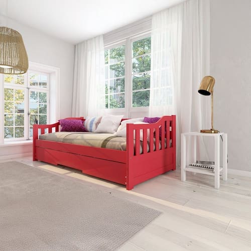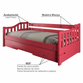 Com sua versatilidade, a Bicama Solteiro American se adapta a qualquer ambiente. Pode ser usada em quartos infantis e juvenis, quartos de hóspedes, apartamentos compactos, casas de praia ou campo, espaços multifuncionais entre outros. Se adapta a diversos estilos, tornando seu ambiente mais bonito, confortável e funcional! Produto Montado: Sim Acompanha Cama Auxiliar: Sim Acompanha Colchão: Não Altura do Estrado até o Chão: 28 cm Altura dos Pés: 3 cm Altura Máxima dos Pés: 3.0000 Ambiente Principal: Quarto Cama Auxiliar Acompanha Colchão: Não Cama Auxiliar com Rodízio: Sim Cama Auxiliar Suporta Até (kg): 90 kg codigo_ean: 7900288118493 Complexidade da Montagem: Baixa: pode ser montado por uma pessoa sozinha Comprimento: 196,5 cm Cor: Vermelho Cor do Produto: Vermelho Escala de Brilho: Fosco Extensível: Sim Informações Complementares: Os objetos que ambientam as fotos não acompanham o produto. Imagens meramente ilustrativas. Cores e tonalidades podem variar. Itens Inclusos: 1 Bicama, Kit Ferragem e Manual de Montagem Largura Máxima: 192,5 cm Largura Mínima: 99 cm Linha ou Coleção: American Manual de Montagem e Instalação: https://product-hub-prd.madeiramadeira.com.br/982084/documents/85e3f545-fef0-4f2c-b64c-b5886cfbdd612754221501317424171437144.pdf Marca: Arbol Movelaria Material do Estrado: Madeira Maciça Material dos Pés: Metal Material Principal: Madeira Maciça Necessita Montagem: Sim Origem do Produto: Nacional Permite a Utilização de Cama Auxiliar: Sim Peso: 48 kg Peso Suportado por cada cama: 90.0000 Possui Baú: Não Possui Escrivaninha: Não Possui Espelhos: Não Possui Gavetas: Não Possui Nichos: Não Possui Pés: 02 Possui Portas: Não Possui Prateleiras: Não Possui Rodízio: Sim Recomendações de Uso, Manutenção e Limpeza: Não armazenar ou utilizar o produto em locais com excesso de umidade. Para limpeza, não utilizar produtos químicos e abrasivos, usar apenas com pano umedecido, para garantir a maior durabilidade do móvel. Seguir rigorosamente as instruções de uso contidas no Manual de Montagem. Rodízio com Trava: Não Sapatas Niveladoras: Não Sistema de Montagem: Parafusos, Cavilhas, Porcas Elípticas, Rodízios, Chave Allen Tamanho da Cama: Solteiro Tamanho do Colchão Indicado (L x C): 88cm x 188cm Tamanho do Colchão Indicado Cama Auxiliar: 88cm x 188cm Tipo de Cama: Bicama Tipo de Colchão: Solteiro Tipo de Estrado: Fixo Tipo de Madeira Maciça: Pinus