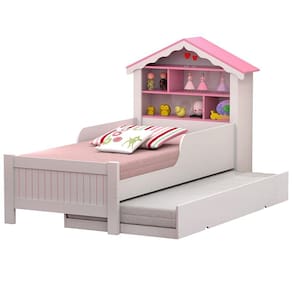 Cama de Solteiro com Auxiliar Princesa – Vitamov A Vitamov desenvolveu a Cama Solteiro Casinha Princesa para proporcionar um ambiente encantador que permite uma noite agradável de sono além de tornar um lugar agradável para brincadeiras e organização do ambiente, sem deixar de lado a beleza e sofisticação. Características do Produto - Produzida em MDF/MDP; - Padrão Solteiro 88 x 188 (Colchão Não Incluso); - Padrão Solteiro para Auxiliar 78 x 188 (Não Incluso) - Proteção Lateral; - Suporte Anti ruído; - Sapata anti umidade; - Pintura Brilhante; - Cabeceira em Formato de Casa; - Prateleiras na cabeceira; - Suporta até 80 Kg; - Acompanha Cama Auxiliar; - Não Acompanha os Colchões; Dimensões do Produto Cama Auxiliar Largura:1875mm Profundidade: 800mm Dimensões do Produto Cama Altura: 1350mm Largura:1000mm Profundidade: 2225mm