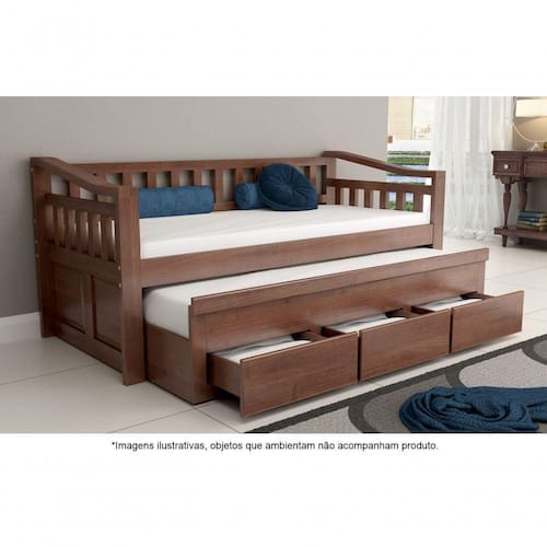 Bicama Solteiro com 3 Gavetas em Madeira Maciça Safira