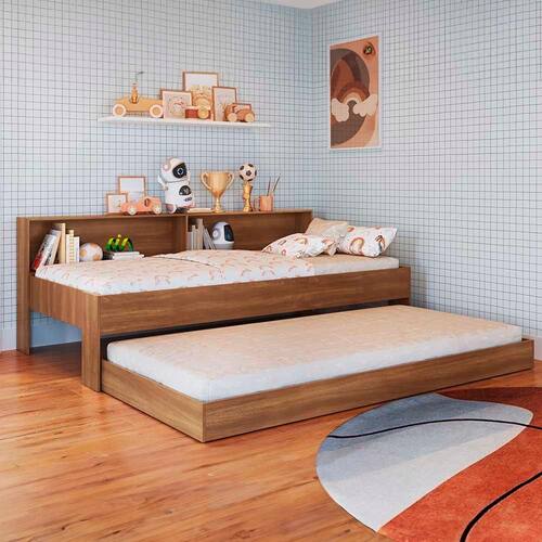 Bicama Solteiro com Prateleiras Nogal San Diego Art In Móveis - Marrom