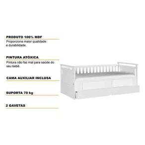 Cama Solteiro de Babá Maria c/ 2 Gavetas e Auxiliar Branco/Amendoa - Peroba