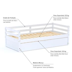 Medida do Colchão da Cama Auxiliar (cm x cm): 88x188 *14 (Altura Máxima Recomendada) (Não incluso)