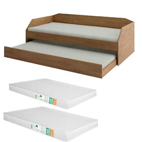 Bicama Solteiro Duo Luxo Com Cama Auxiliar Em Mdf Premium Amendoa Com 2 Colchões