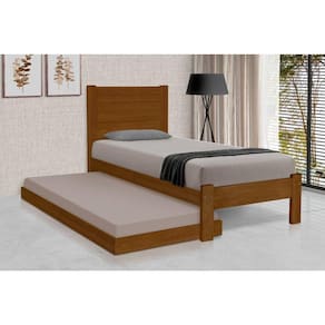 Essa é uma Cama Tradicional, sofisticada e aconchegante, com uma estrutura em madeira maciça de reflorestamento, altamente resistente e durável. Ideal para acomodar Colchão Solteiro (088). Com acabamento em Esmalte PU, proporciona um visual fosco, moderno e seguindo as grandes tendências do mercado. E agora com a cama auxiliar, tudo ficou mais prático!!!Tipo: Cama SolteiroModelo: LaraCor: CastanhoCaracterísticas- Madeira maciça;- Bitola dos pés 9,5 x 3,5;- Sistema exclusivo para travamento do estrado;- Barras em madeira maciça - Ripas em madeira;- Sarrafos madeira.Medidas:Altura: 114cmLargura: 95cmComprimento: 196cmMedidas da cama auxiliar:Altura: 12cmLargura: 93cmComprimento: 189cmATENÇÃOOBS: Os objetos que compõem a imagem ambientada não acompanham o produto!IMAGENS MERAMENTE ILUSTRATIVAS REALIZADO EDIÇÃO, PODENDO HAVER UMA PEQUENA VARIAÇÃO DE COR DEPENDENDO DE CADA TELA OU MONITOR.Bicama Solteiro em Madeira MaciÃa Lara - Castanho