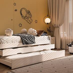 A Bicama Luma é ideal para quem busca otimizar o espaço sem abrir mão do conforto e da organização. Com um design clean e moderno, ela se harmoniza facilmente com qualquer decoração, especialmente em ambientes infantis e juvenis. Conta com uma prática Cama Auxiliar de rodízios, que desliza suavemente para oferecer um leito extra. Perfeita para receber amigos, primos ou para os pais que precisam acompanhar a criança durante a noite.O módulo inferior também integra duas gavetas espaçosas, ideais para guardar roupas de cama, brinquedos, livros ou objetos pessoais, mantendo o quarto sempre arrumado. Transforma o ambiente de dormir em um espaço de convivência e organização de forma rápida e eficiente. A solução perfeita para quartos versáteis! Produto Montado: Sim Acabamento da Gaveta: Pintura Acompanha Cama Auxiliar: Sim Acompanha Colchão: Não Altura do Estrado até o Chão: 41 cm Ambiente Principal: Quarto Cama Auxiliar Acompanha Colchão: Não Cama Auxiliar com Rodízio: Sim Cama Auxiliar Suporta Até (kg): 50 kg codigo_ean: 7900288287335 Complexidade da Montagem: Média: pode ser montado por mais de uma pessoa e/ou necessite de maior conhecimento para montagem Cor: Branco Cor do Produto: Branco Escala de Brilho: Semi-Brilho Escala de Brilho da Gaveta: Semi-Brilho Extensível: Não Gaveta com Chave: Não Itens Inclusos: 1 Bicama, Kit Ferragem e Manual de Montagem. Linha ou Coleção: Luma Manual de Montagem e Instalação: https://product-hub-prd.madeiramadeira.com.br/325138950/documents/c6e25dc0-ebd7-4af3-83a6-b74be737889b900240miulli190x90montagem.pdf Marca: Inter Link Material da Gaveta: Madeira Maciça Material do Estrado: Pinus Material Principal: Madeira Maciça Necessita Montagem: Sim Origem do Produto: Nacional Permite a Utilização de Cama Auxiliar: Sim Peso: 44,5 kg Peso Máximo por Gaveta: 10 kg Peso Suportado por cada cama: 100 kg Possui Baú: Não Possui Escrivaninha: Não Possui Gavetas: Sim Possui Nichos: Não Possui Pés: Não Possui Portas: Não Possui Prateleiras: Não Possui Rodízio: Sim Quantidade de Gavetas: 02 Gavetas Recomendações de Uso, Manutenção e Limpeza: Não colocar o produto em lugar úmido, não arrastar, limpar somente com pano macio e seco, não expor o produto a incidência de luz solar, não colocar peso superior ao indicado. Rodízio com Trava: Não Sistema de Montagem: Parafusos, Cavilhas Tamanho da Cama: Solteiro Tamanho do Colchão Indicado (L x C): 88x188 Tamanho do Colchão Indicado Cama Auxiliar: 88x184 Tipo de Cama: Bicama Tipo de Colchão: Solteiro Tipo de Corrediça da Gaveta: Madeira Tipo de Estrado: Fixo Tipo de Madeira Maciça: Pinus Tipo de Madeira Maciça da Gaveta: Pinus Tipo de Puxador da Gaveta: Embutido