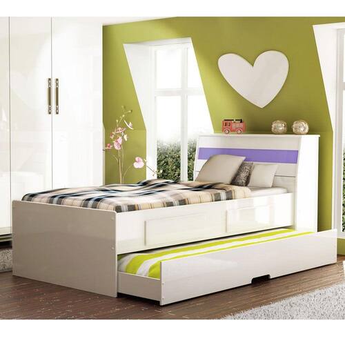 Essa fantástica cama ainda acompanha 1 cama auxiliar, 2 gavetas com corrediças metálicas e baú na cabeceira para um aproveitamento total do espaço.