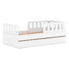 Diferenciais: Grades Removíveis, Auxiliar com 4 rodízios, MDF Melamina 15mm, Estrados em Madeira Maciça, ( 02 Grades e Cabeceira e Peseira Anatômica com Fitas de Borda em PVC Flexível ).