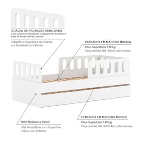 Medida do Colchão da Cama (cm x cm): 188x88 (Não incluso)