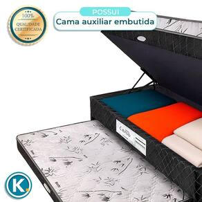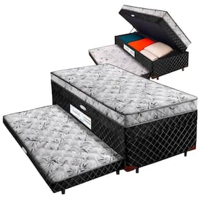 Bicama Solteiro Nanda Nature Preto 88x188 Base box solteirão ideal para otimizar o espaço do quarto com praticidade Revestimento em Material Sintético : fácil de limpar e com visual moderno