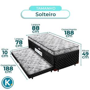 Modelo: Universal Marca: Nature Tamanho: Solteirão Tecido: Milão Largura: 96cm Comprimento: 203cm Altura: 25cm Altura dos Pés: 13cm Material dos Pés: Madeira Suporte de Peso: 150Kg Peso: 20Kg Garantia: 3 Meses