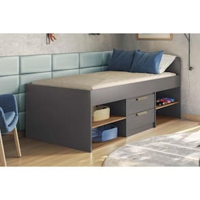 CARACTERÍSTICAS DE MÓVEIS Tipo de Estrutura do Móvel - MDF/MDP Tipo de Pintura - UV Tipo de Acabamento da Pintura - Fosca Tipo de puxador - ABS/PVC Tamanho do colchão para usar na cama - Solteiro 88x188 Quantidade de Prateleiras - 2 Prateleiras Quantidade de Gavetas - 2 Gavetas Diferenciais da Gaveta - c/ Corrediças Telescópicas Garantia - 3 meses