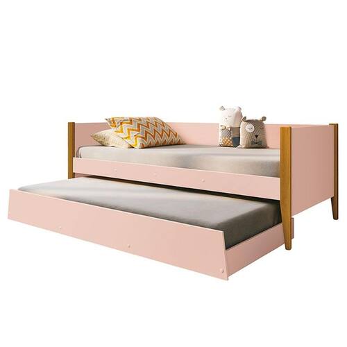 Bicama Solteiro Noah Rosa com Pés Amadeirado - Reller
