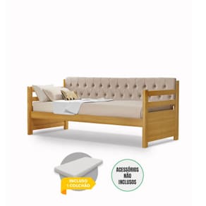 Com Detalhe Estofado Capitonê Tecido Estofado: Veludo Cor Estofado: Bege Estrutura em Madeira Cor Estrutura: Imbuia Com estrado de Ripas de MDF 9mm