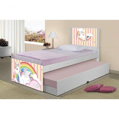 Bicama Unicórnio Meigo Com Colchões Bicama Juvenil Barcelona Adesivada Unicórnio Meigo com 2 Colchões - Branco Ref. 1406