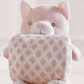Características Gerais do Produto: - Composição: 100% Poliéster - Material: Poliéster - Material do Enchimento: 100% Poliéster - Bordado: Não - Informações Adicionais: Informação INMETRO: Bichinho de Pelúcia com Manta - Ref. 18.04.0001 Produto Certificado por BRICS OCP 0098 CE-BRI/BRICS 00689-18; - Cuidados com a Peça: Evitar produtos à base de Cloro; Evitar Secadora; Lavar separadamente de outros tipos de tecidos - Altura (cm): 26.00 - Largura (cm): 24.00 - Comprimento (cm): 24.00 - Peso (g): 330.00