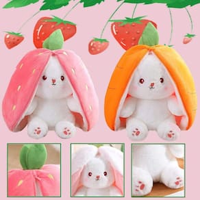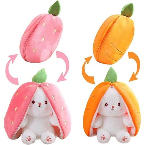 - 🥕?PELÚCIA DE COELHINHO REVERSÍVEL?Mate seu tédio em um instante! De um lado está um lindo travesseiro de morango ou cenoura, e do outro lado está um coelhinho de pelúcia engraçado com orelhas grandes. As lindas orelhas de coelho estão chamando você e com certeza conquistarão os corações, namoradas e namoradas!