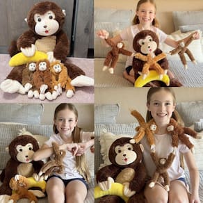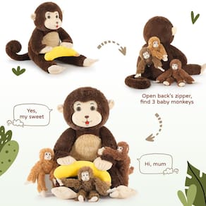 Desde a fundação, a MaoGoLan é uma empresa de brinquedos de pelúcia reconhecida mundialmente por produtos inovadores de qualidade. Com base em nossos designs gráficos, continuamos a desenvolver animais de pelúcia macios para atrair a próxima geração de clientes. Cada um dos nossos brinquedos de pelúcia é feito de materiais de pelúcia ultramacios e premium. Características: o adorável brinquedo de pelúcia de macaco é feito com algodão super fofo e ultramacio, cada macaco com braços longos é projetado para abraçar e aconchegar, proporcionando uma sensação segura e criando um ambiente confortável. Os bichos de pelúcia fofos de macaco com bumbum serão bons companheiros para brincar. Tamanho: 65 cm/G O pacote inclui: 1 macaco marrom grande, 3 macacos castanhos de pelúcia Observações: Medição manual, permita pequenos erros de tamanho. - Família de macacos de pelúcia: 3 macacos de pelúcia com mão de fecho aderente em uma mamãe grávida, você receberá um macaco de pelúcia mãe gigante e 3 filhotes fofos de pelúcia, macaco de pelúcia marrom, brinquedo de macaco marrom. O macaco de pelúcia vem com uma surpresa nas costas, abra o zíper, você pode encontrar 3 pequenos macacos abafados - Macaco de pelúcia abraçável com braços compridos: macacos de pelúcia de 65 cm têm banana grande de pelúcia, 4 brinquedos de pelúcia de animais de macaco bordados são populares entre 3, 4, 5, 6, 7, 8, 9 anos na maioria das ocasiões. O interesse de meninos e meninas se desenvolveu por sua própria brincadeira divertida. O conjunto grande de pelúcia de macaco é um brinquedo interativo para atrair a atenção das crianças. Mamãe macaco de pelúcia também é um travesseiro de pelúcia macio para adolescentes ou adultos - Presente de decoração de férias: pelúcia de macaco marrom é uma decoração ideal para quarto, berçário, festa e presente atraente para bebê, aniversário, dia das mães, chá de bebê, dia das crianças, Natal e Páscoa. Macaco de pelúcia com filhotes será seu brinquedo de animal favorito, brinquedo de pelúcia de macaco fofo para dormir ou brincar - Amigos próximos: Macaco de pelúcia pendurado é um bicho de pelúcia fofo. Os brinquedos macios de macaco para meninas são adequados para compartilhar e brincar juntas, incentivar a brincadeira de fingir, ajudando as crianças a promover habilidades sociais, estimular a imaginação, a criatividade e aprender o amor - Dicas: o macaco de pelúcia da mãe e 3 macacos pequenos ficarão um pouco amassados porque a pelúcia do animal é comprimida a vácuo. Se colocar brinquedos de pelúcia de macaco em uma secadora em alta temperatura por um tempo, você receberá brinquedos de pelúcia de macaco a granel. Recomendamos que você use detergente e escova para limpar suavemente a superfície de animais de pelúcia de macaco macio a granel