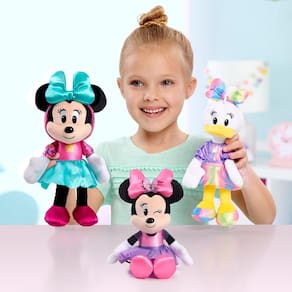 Bicho de pelúcia pequeno Disney Junior Minnie Mouse de 9 polegadas, pelúcia supermacia, finge brincar — inclui: brinquedo de pelúcia Minnie Mouse. - A pequena boneca de pelúcia Disney Junior Minnie Mouse é supermacia e apresenta uma linda roupa de tecido com materiais mistos. Ela usa um capuz de cetim rosa, saia aqua e laço combinando. - O bicho de pelúcia Minnie Mouse de 9 polegadas que pode ser abraçado é um tamanho divertido e colecionável que as crianças vão adorar levar aonde quer que vão. - Pelúcia macia e aveludada com detalhes finos de personagens e olhos bordados tornam este brinquedo infantil Disney Junior perfeito para brincar e exibir. - Esta boneca macia da Disney é ideal para fãs da Minnie Mouse de todas as idades e crianças de 3 anos ou mais.