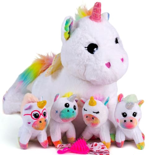 - Conjunto de bichos de pelúcia de unicórnio 5 em 1 – um unicórnio de pelúcia com 4 adoráveis unicórnios de bebê escondidos em sua barriga com zíper, tornando este adorável brinquedo de unicórnio um sucesso instantâneo. Este unicórnio de pelúcia será uma surpresa gigante para meninas de 3 anos ou mais