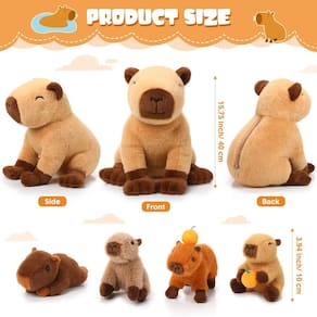 A boneca de pelúcia de capivara de desenho animado inclui 1 mãe capivara grande e 4 lindos bebês capivara. Deixe seus filhos aproveitarem ao máximo sua imaginação e criatividade e inventem alguns contos sobre mães capivaras e bebês capivara, adequados para festas de chá e festas de contação de histórias.