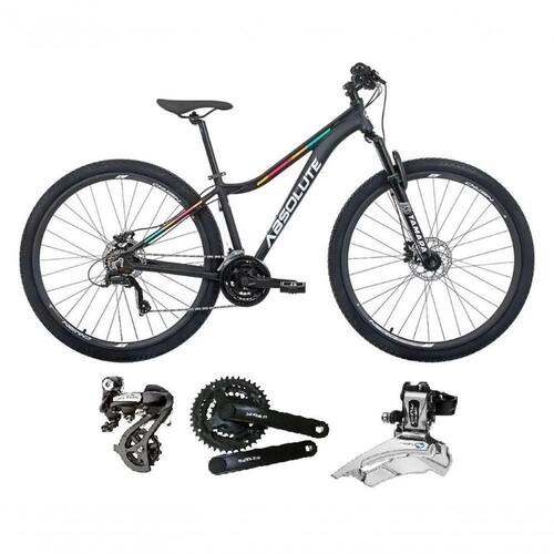 Bike aro 29, com quadro Absolute Mia 3, nova na caixa a pronta , produto com ótima qualidade e acabamento, possui 24 marchas com sistema de alavancas rapid fire que a cada clique uma marcha é trocada, câmbio dianteiro shimano altus e traseiro shimano altus, garfo com suspensão e sistema de trava para melhor performance, sistema de freio a disco hidráulico, pneus com cravo baixo para uso em terra e asfalto. Bicicleta pré montada, vai precisar apenas fixar a roda dianteira, guidão, selim e pedais. Seguem abaixo características da bike: