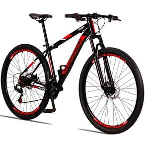 Bicicleta 29 Aluminum Raider 21 Marchas Freio a Disco com Suspensão - 21-Preto+Vermelho