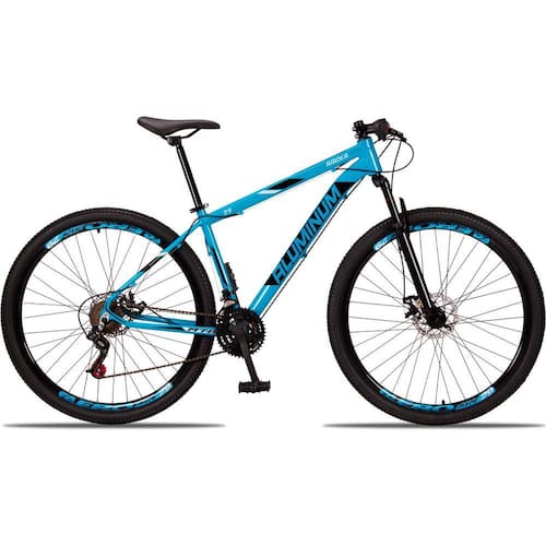 Bicicleta 29 Aluminum Raider 21 Marchas Freio a Disco com Suspensão - 15-Azul+Preto