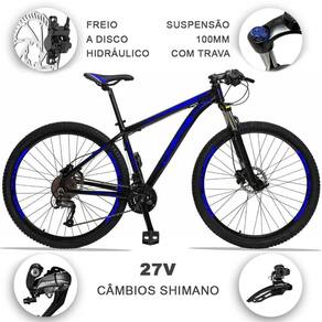 Bicicleta 29 Drais 27 Marchas Câmbio Shimano Freio Hidráulico Suspensão com Trava - Cor: Preto+Marinho | Tamanho: 21