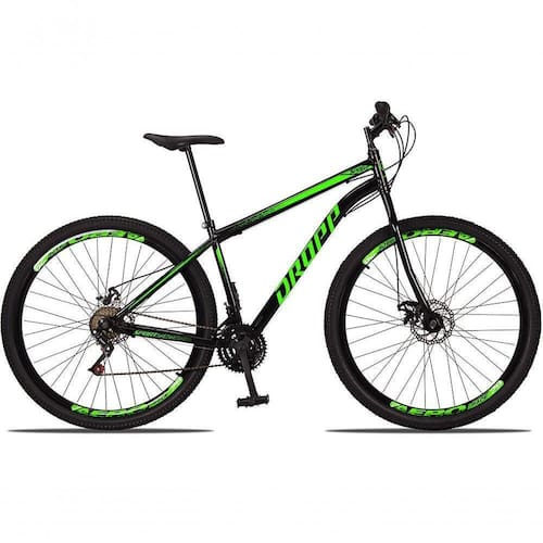 Aro: 29 | Marchas: 21 | Modalidade: Passeio | Suspensão: Sem Suspensão | Material do Quadro: Quadro Dropp Sport em Aço | Modelo e Composição do Garfo: Garfo Rígido em Aço | Marca e Modelo do Sistema de Câmbio: Câmbio Dianteiro imp. 3v imp / Câmbio Traseiro imp. 7v imp / Trocador de Marchas Grip Shift - 21v - imp. | Marca e Composição do Pedivela: Pedivela 3 Coroas em Aço | Modelo e Composição do Freio: Freio a Disco 160mm Preto - MECÂNICO | Material da Roda: Aros Aero 36 Furos Folha Dupla Alumínio | Pneus: Pneu 29 (Imp.) | Marca e Composição dos Cubos: Cubos Rosca 36f em aço | Modelo e Composição do Guidão: Guidão Curvo em Aço | Marca e Composição do Selim: Selim Sport | Material do Canote: Aço 22.2 | Importante: Bicicleta para passeios e trilhas leves, não indicada para manobras radicais e trilhas pesadas / Consulte o tamanho de quadro adequado à sua altura antes de realizar a compra. | Montagem do Equipamento: A montagem é de responsabilidade do cliente, sugerimos que seja efetuada por uma oficina especializada. | Garantia do Fabricante: 90 dias. A garantia será validada para as bicicletas montadas e revisadas por uma oficina especializada e é referente apenas ao primeiro proprietário | Informação Relevante: Pode haver alguma diferença de tonalidade entre a imagem e o produto real, por conta do tratamento de imagens e a calibração de cores do monitor Cor: Preto+verde