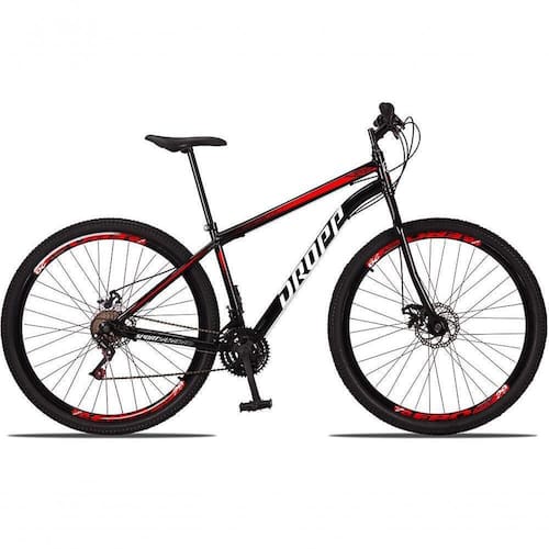 Aro: 29 | Marchas: 21 | Modalidade: Passeio | Suspensão: Sem Suspensão | Material do Quadro: Quadro Dropp Sport em Aço | Modelo e Composição do Garfo: Garfo Rígido em Aço | Marca e Modelo do Sistema de Câmbio: Câmbio Dianteiro imp. 3v imp / Câmbio Traseiro imp. 7v imp / Trocador de Marchas Grip Shift - 21v - imp. | Marca e Composição do Pedivela: Pedivela 3 Coroas em Aço | Modelo e Composição do Freio: Freio a Disco 160mm Preto - MECÂNICO | Material da Roda: Aros Aero 36 Furos Folha Dupla Alumínio | Pneus: Pneu 29 (Imp.) | Marca e Composição dos Cubos: Cubos Rosca 36f em aço | Modelo e Composição do Guidão: Guidão Curvo em Aço | Marca e Composição do Selim: Selim Sport | Material do Canote: Aço 22.2 | Importante: Bicicleta para passeios e trilhas leves, não indicada para manobras radicais e trilhas pesadas / Consulte o tamanho de quadro adequado à sua altura antes de realizar a compra. | Montagem do Equipamento: A montagem é de responsabilidade do cliente, sugerimos que seja efetuada por uma oficina especializada. | Garantia do Fabricante: 90 dias. A garantia será validada para as bicicletas montadas e revisadas por uma oficina especializada e é referente apenas ao primeiro proprietário | Informação Relevante: Pode haver alguma diferença de tonalidade entre a imagem e o produto real, por conta do tratamento de imagens e a calibração de cores do monitor Cor: Preto+Vermelho