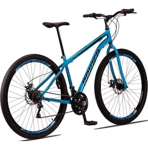 Aro: 29 | Marchas: 21 | Modalidade: Passeio | Suspensão: Sem Suspensão | Material do Quadro: Quadro em Aço | Modelo e Composição do Garfo: Garfo Rígido em Aço | Marca e Modelo do Sistema de Câmbio: Câmbio Dianteiro imp. 3v imp / Câmbio Traseiro imp. 7v imp / Trocador de Marchas Grip Shift - 21v - imp. | Marca e Composição do Pedivela: Pedivela 3 Coroas em Aço | Modelo e Composição do Freio: Freio a Disco 160mm Preto - MECÂNICO | Material da Roda: Aros Aero 36 Furos Folha Dupla Alumínio | Pneus: Pneu 29 (Imp.) | Marca e Composição dos Cubos: Cubos Rosca 36f em aço | Modelo e Composição do Guidão: Guidão Curvo em Aço | Marca e Composição do Selim: Selim Sport | Material do Canote: Aço 22.2 | Importante: Bicicleta para passeios e trilhas leves, não indicada para manobras radicais e trilhas pesadas / Consulte o tamanho de quadro adequado à sua altura antes de realizar a compra. | Montagem do Equipamento: A montagem é de responsabilidade do cliente, sugerimos que seja efetuada por uma oficina especializada. | Garantia do Fabricante: 90 dias. A garantia será validada para as bicicletas montadas e revisadas por uma oficina especializada e é referente apenas ao primeiro proprietário | Informação Relevante: Pode haver alguma diferença de tonalidade entre a imagem e o produto real, por conta do tratamento de imagens e a calibração de cores do monitor Cor: Azul+preto