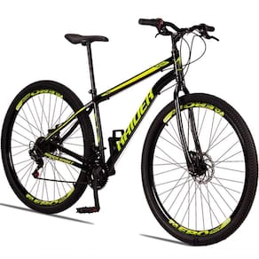 Aro: 29 | Marchas: 21 | Modalidade: Passeio | Suspensão: Sem Suspensão | Material do Quadro: Quadro em Aço | Modelo e Composição do Garfo: Garfo Rígido em Aço | Marca e Modelo do Sistema de Câmbio: Câmbio Dianteiro imp. 3v imp / Câmbio Traseiro imp. 7v imp / Trocador de Marchas Grip Shift - 21v - imp. | Marca e Composição do Pedivela: Pedivela 3 Coroas em Aço | Modelo e Composição do Freio: Freio a Disco 160mm Preto - MECÂNICO | Material da Roda: Aros Aero 36 Furos Folha Dupla Alumínio | Pneus: Pneu 29 (Imp.) | Marca e Composição dos Cubos: Cubos Rosca 36f em aço | Modelo e Composição do Guidão: Guidão Curvo em Aço | Marca e Composição do Selim: Selim Sport | Material do Canote: Aço 22.2 | Importante: Bicicleta para passeios e trilhas leves, não indicada para manobras radicais e trilhas pesadas / Consulte o tamanho de quadro adequado à sua altura antes de realizar a compra. | Montagem do Equipamento: A montagem é de responsabilidade do cliente, sugerimos que seja efetuada por uma oficina especializada. | Garantia do Fabricante: 90 dias. A garantia será validada para as bicicletas montadas e revisadas por uma oficina especializada e é referente apenas ao primeiro proprietário | Informação Relevante: Pode haver alguma diferença de tonalidade entre a imagem e o produto real, por conta do tratamento de imagens e a calibração de cores do monitor Cor: Preto+Amarelo