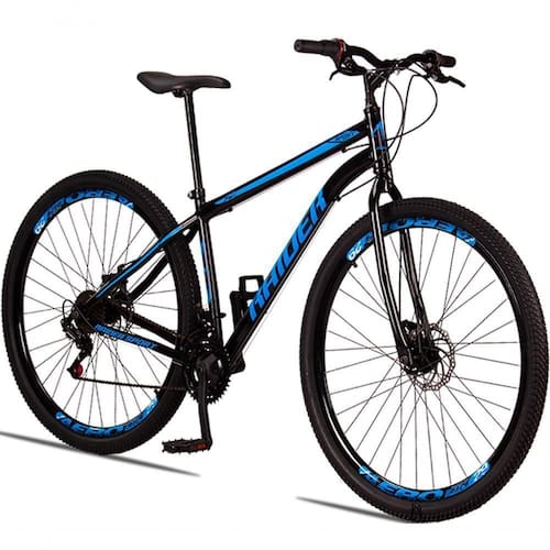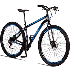 Aro: 29 | Marchas: 21 | Modalidade: Passeio | Suspensão: Sem Suspensão | Material do Quadro: Quadro em Aço | Modelo e Composição do Garfo: Garfo Rígido em Aço | Marca e Modelo do Sistema de Câmbio: Câmbio Dianteiro imp. 3v imp / Câmbio Traseiro imp. 7v imp / Trocador de Marchas Grip Shift - 21v - imp. | Marca e Composição do Pedivela: Pedivela 3 Coroas em Aço | Modelo e Composição do Freio: Freio a Disco 160mm Preto - MECÂNICO | Material da Roda: Aros Aero 36 Furos Folha Dupla Alumínio | Pneus: Pneu 29 (Imp.) | Marca e Composição dos Cubos: Cubos Rosca 36f em aço | Modelo e Composição do Guidão: Guidão Curvo em Aço | Marca e Composição do Selim: Selim Sport | Material do Canote: Aço 22.2 | Importante: Bicicleta para passeios e trilhas leves, não indicada para manobras radicais e trilhas pesadas / Consulte o tamanho de quadro adequado à sua altura antes de realizar a compra. | Montagem do Equipamento: A montagem é de responsabilidade do cliente, sugerimos que seja efetuada por uma oficina especializada. | Garantia do Fabricante: 90 dias. A garantia será validada para as bicicletas montadas e revisadas por uma oficina especializada e é referente apenas ao primeiro proprietário | Informação Relevante: Pode haver alguma diferença de tonalidade entre a imagem e o produto real, por conta do tratamento de imagens e a calibração de cores do monitor Cor: Preto+Azul