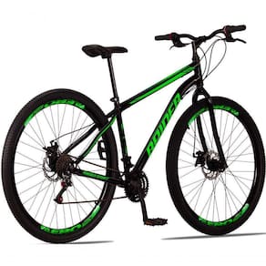 Aro: 29 | Marchas: 21 | Modalidade: Passeio | Suspensão: Sem Suspensão | Material do Quadro: Quadro em Aço | Modelo e Composição do Garfo: Garfo Rígido em Aço | Marca e Modelo do Sistema de Câmbio: Câmbio Dianteiro imp. 3v imp / Câmbio Traseiro imp. 7v imp / Trocador de Marchas Grip Shift - 21v - imp. | Marca e Composição do Pedivela: Pedivela 3 Coroas em Aço | Modelo e Composição do Freio: Freio a Disco 160mm Preto - MECÂNICO | Material da Roda: Aros Aero 36 Furos Folha Dupla Alumínio | Pneus: Pneu 29 (Imp.) | Marca e Composição dos Cubos: Cubos Rosca 36f em aço | Modelo e Composição do Guidão: Guidão Curvo em Aço | Marca e Composição do Selim: Selim Sport | Material do Canote: Aço 22.2 | Importante: Bicicleta para passeios e trilhas leves, não indicada para manobras radicais e trilhas pesadas / Consulte o tamanho de quadro adequado à sua altura antes de realizar a compra. | Montagem do Equipamento: A montagem é de responsabilidade do cliente, sugerimos que seja efetuada por uma oficina especializada. | Garantia do Fabricante: 90 dias. A garantia será validada para as bicicletas montadas e revisadas por uma oficina especializada e é referente apenas ao primeiro proprietário | Informação Relevante: Pode haver alguma diferença de tonalidade entre a imagem e o produto real, por conta do tratamento de imagens e a calibração de cores do monitor Cor: Preto+verde