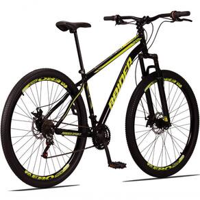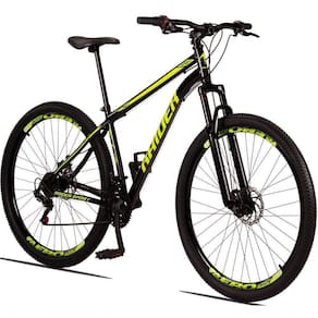 Aro: 29 | Marchas: 21 | Modalidade: Passeio | Suspensão: Dianteira | Material do Quadro: Quadro em Aço | Modelo e Composição do Garfo: Suspensão Preto 29 | Marca e Modelo do Sistema de Câmbio: Câmbio Dianteiro imp. 3v imp / Câmbio Traseiro imp. 7v imp / Trocador de Marchas Grip Shift - 21v - imp. | Marca e Composição do Pedivela: Pedivela 3 Coroas em Aço | Modelo e Composição do Freio: Freio a Disco 160mm Preto - MECÂNICO | Material da Roda: Aros Aero 36 Furos Folha Dupla Alumínio | Pneus: Pneu 29 (Imp.) | Marca e Composição dos Cubos: Cubos Rosca 36f em aço | Modelo e Composição do Guidão: Guidão Reto em Alumínio | Marca e Composição do Selim: Selim Sport | Material do Canote: Aço 22.2 | Importante: Bicicleta para passeios e trilhas leves, não indicada para manobras radicais e trilhas pesadas / Consulte o tamanho de quadro adequado à sua altura antes de realizar a compra. | Montagem do Equipamento: A montagem é de responsabilidade do cliente, sugerimos que seja efetuada por uma oficina especializada. | Garantia do Fabricante: 90 dias. A garantia será validada para as bicicletas montadas e revisadas por uma oficina especializada e é referente apenas ao primeiro proprietário | Informação Relevante: Pode haver alguma diferença de tonalidade entre a imagem e o produto real, por conta do tratamento de imagens e a calibração de cores do monitor Cor: Preto+Amarelo