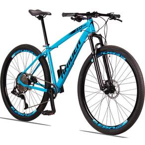 A bike possui um quadro altamente resistente e leve, fabricado em alumínio 6061, 12 combinações de marcha para você encarar qualquer subida, freios hidráulicos que garantem sua segurança em qualquer ladeira e uma suspensão 100mm com trava remota que proporciona conforto no seu percurso e mais desempenho quando travada!