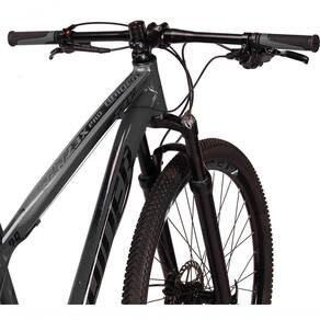 A bike possui um quadro altamente resistente e leve, fabricado em alumínio 6061, 12 combinações de marcha para você encarar qualquer subida, freios hidráulicos que garantem sua segurança em qualquer ; ladeira e uma suspensão 100mm com trava remota que proporciona conforto no seu percurso e mais desempenho quando travada!